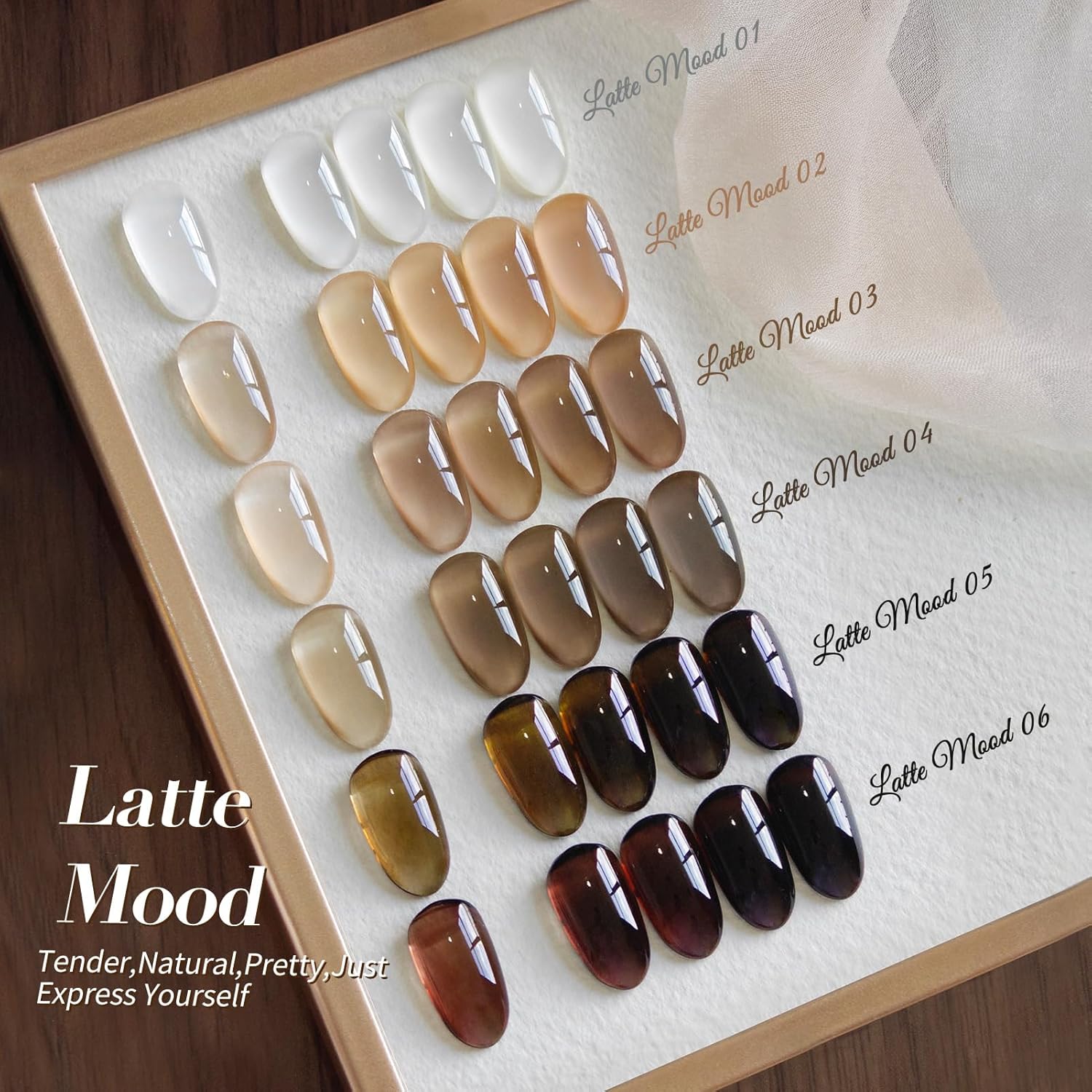 Born Pretty Jelly Gel Nail Polish Fall Winter Brown Chocolate Nude Skin Tone Milky White Gel Polish Neutral Beige Khaki Gel Polish Kit Nail Art Kit for Salon Manicure and DIY at Home 6PCS 7ML