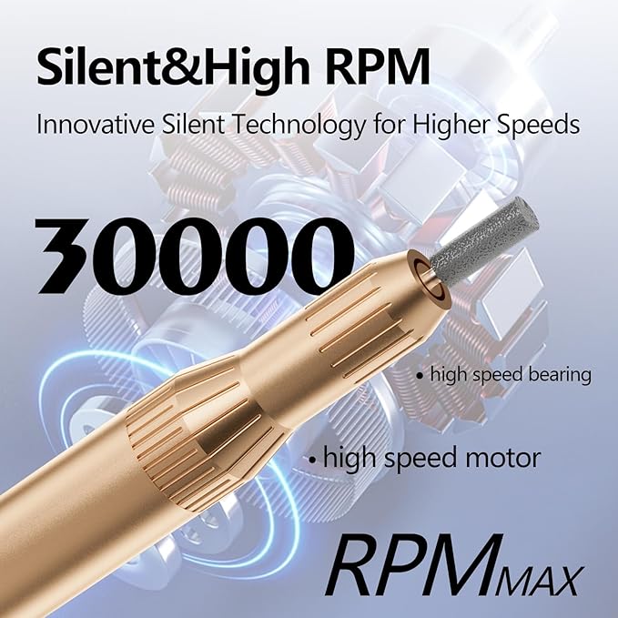 - Low noise and very durable: Our electric nail drill is durable, low noise. Equipped with an upgraded motor, it has powerful performance, operates quietly and has excellent heat dissipation capabilities, thus extending its service life.