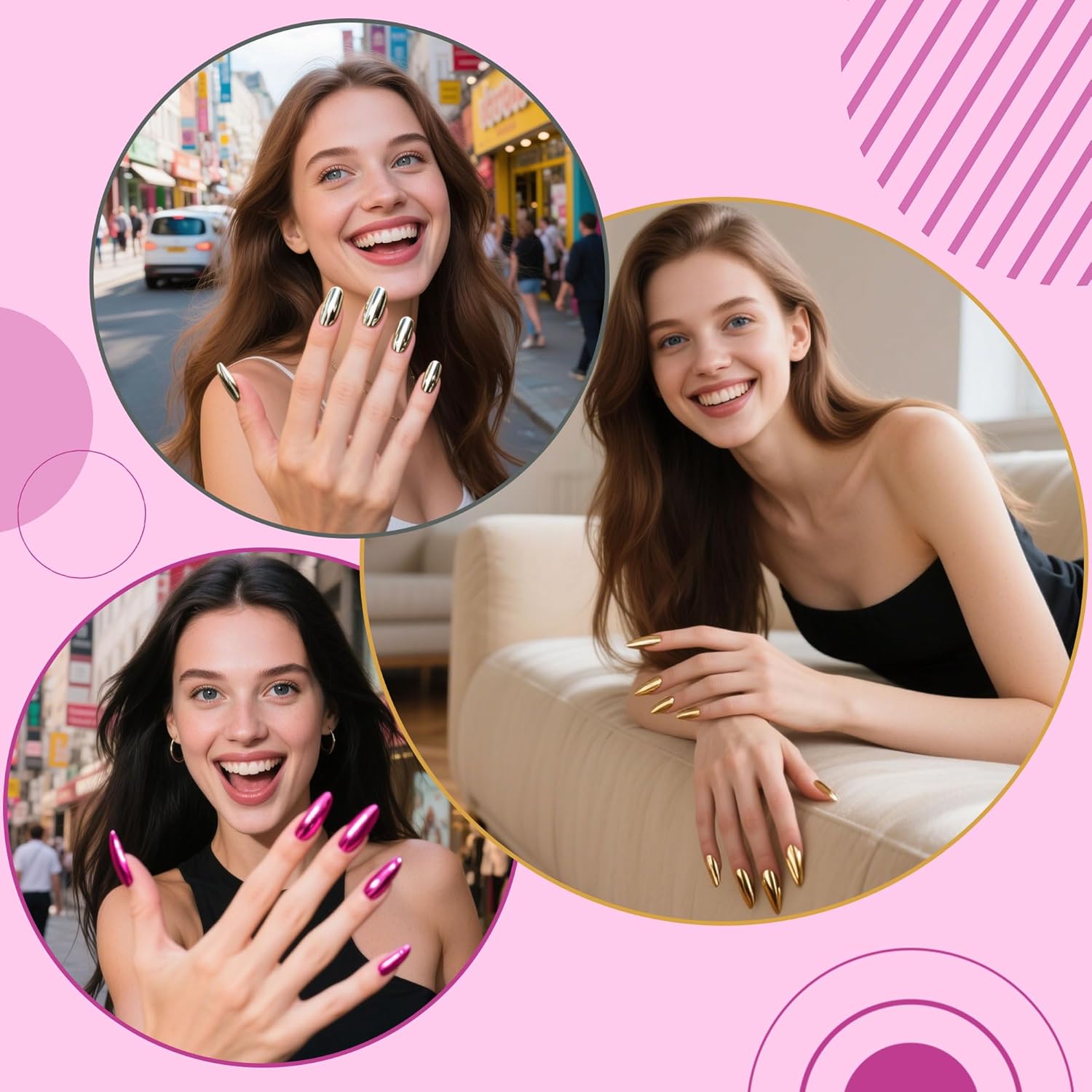 - WIDE APPLICATION:These powders need to be used with Gel nail polish(color gel,gel base coat and glossy gel top coat). Some regular Polish can also be used, but not all. These powders can be used on natural nails, UV gel nails, acrylic nails or false nail tips. You can use them very easily. It is a good solution with rhinestones 、nail art fimo or other accessories to build a nice nail art
