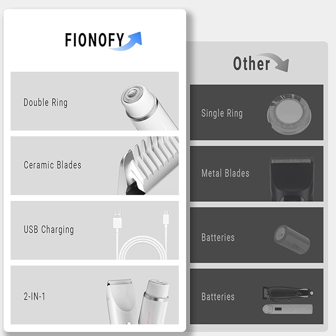 - 【Dual-Head Versatility】Effortlessly switch between trimming and shaving legs, underarms, and delicate areas – always precise and stubble-free.