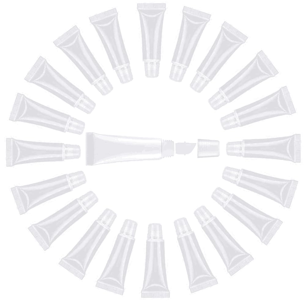 JIAKAI 10ml Mini Clear Refillable Empty Tubes Lip Gloss Balm Container,Soft Tubes Makeup Box,Shampoo Samples Empty Tubes with Screw Cover (20pcs)